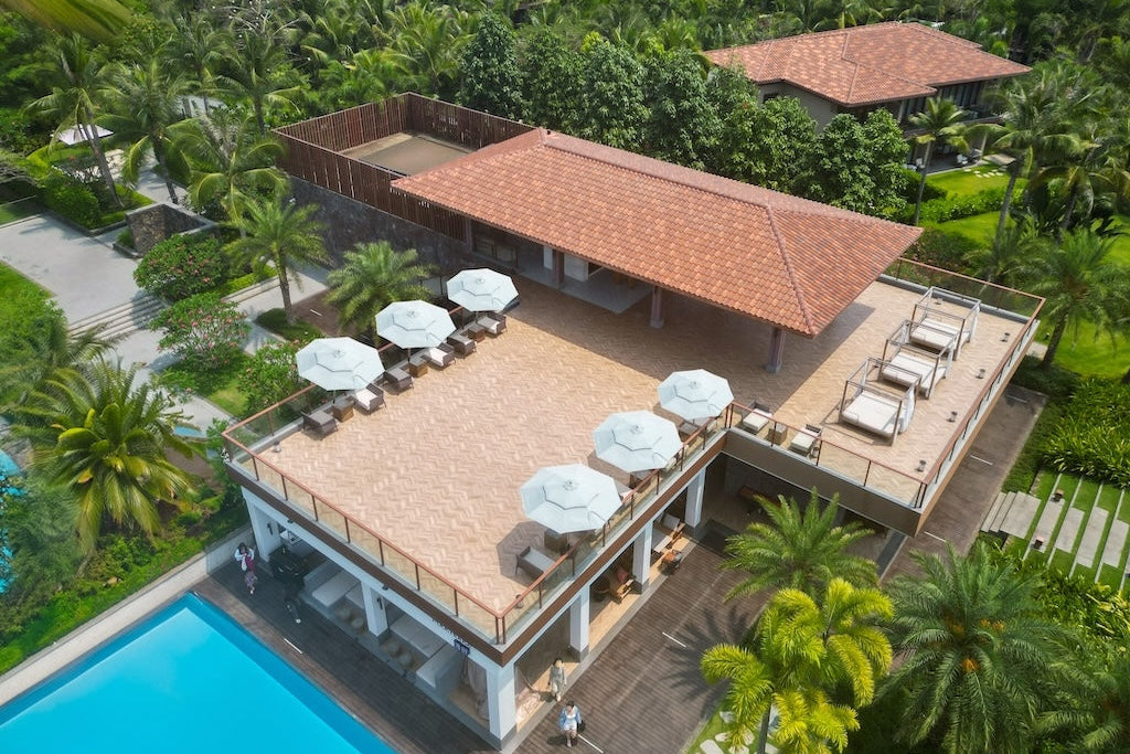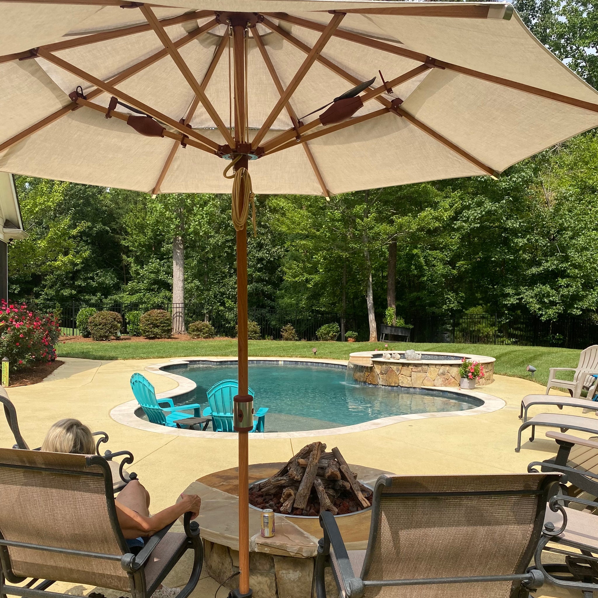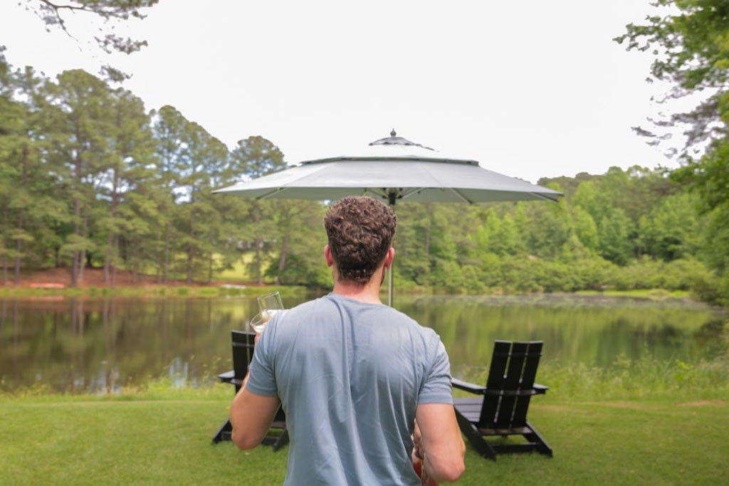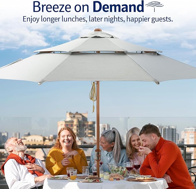 The Alizé Umbrella features four individually controlled fans, allowing you to adjust airflow for personalized comfort with the push of a button on the pole.