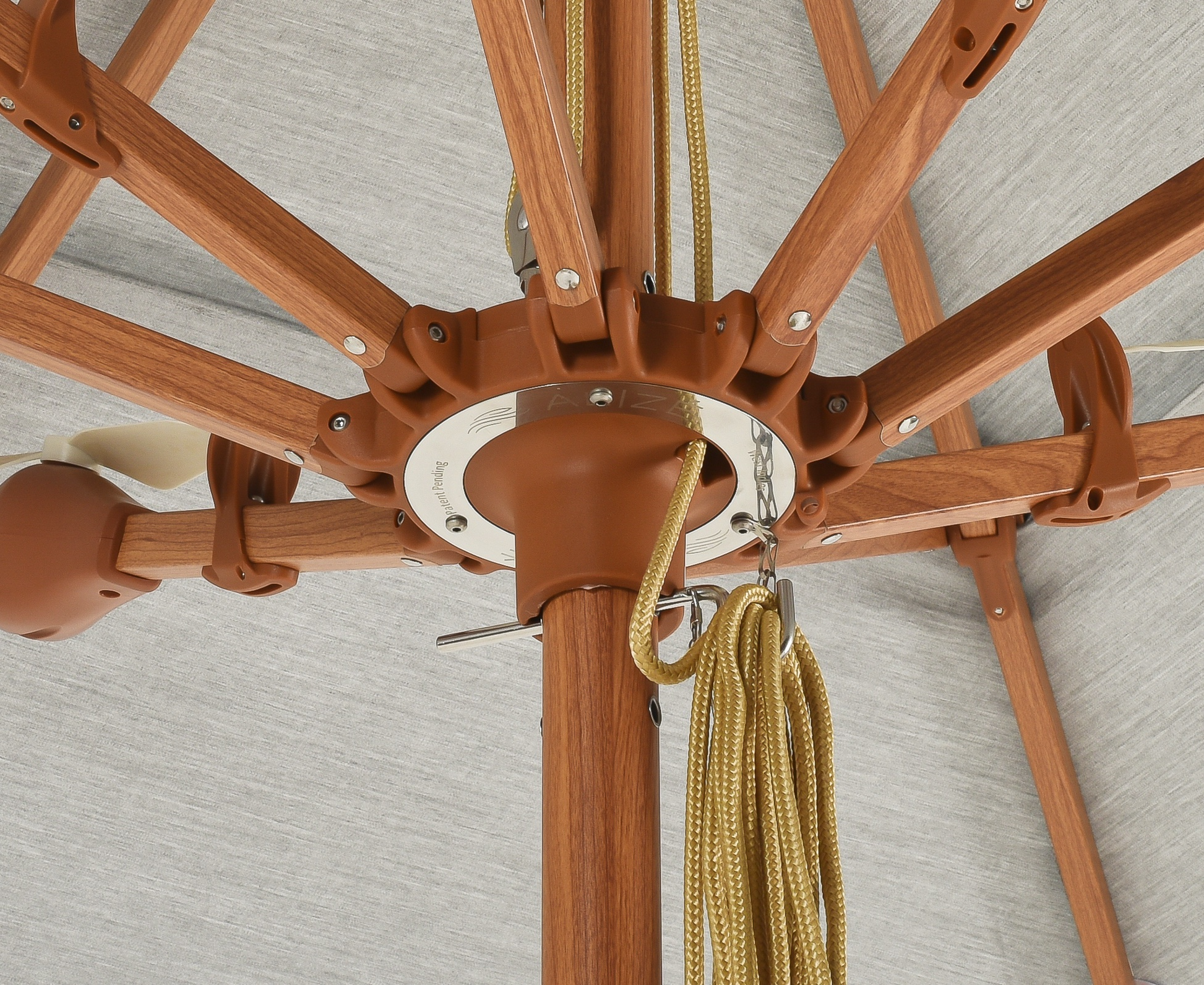 For added safety, the fans are secured in place with a solenoid pin, which only activates when the umbrella is fully open and powered. Even if the power is disconnected, the fans remain securely locked in place, ensuring stability at all times.