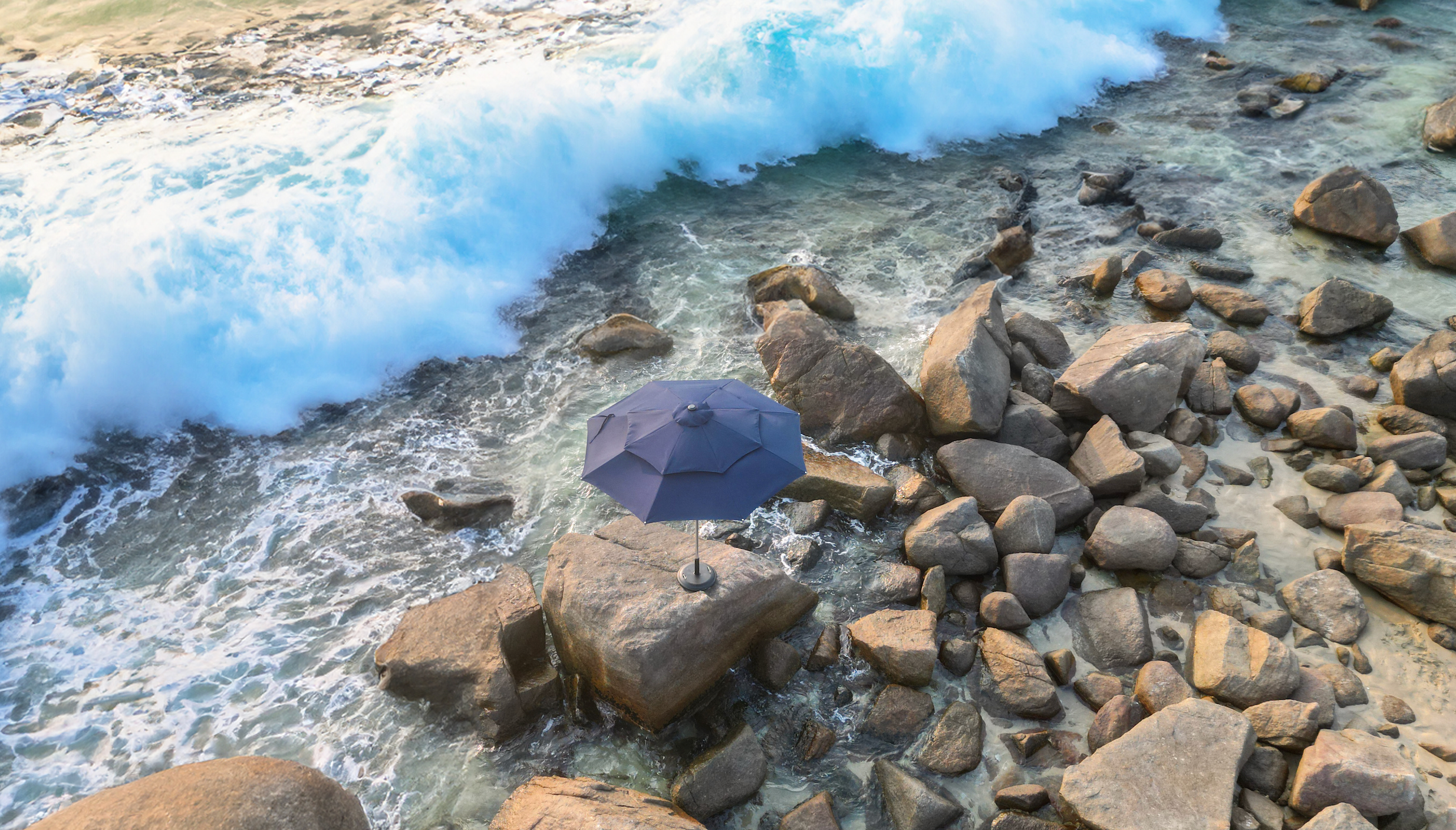 The Alizé Umbrella features four individually controlled fans, allowing you to adjust airflow for personalized comfort with the push of a button on the pole.